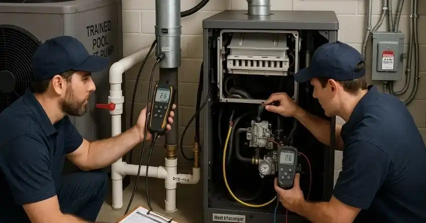Pool heater repair problems in North Ward, Orillia? HVAC Orillia finds the cause, replaces igniters, sensors, gas valves, control boards, and heat exchangers, clears scale, and confirms operation so the water warms up without unnecessary upsells.